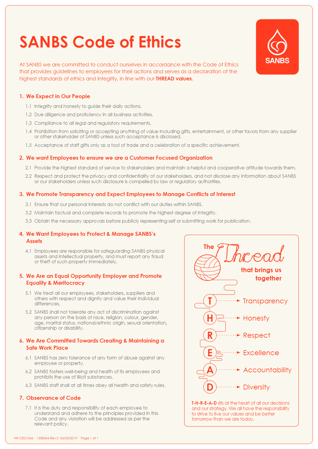 We are committed to conducting ourselves in line with our Code of Ethics. This code provides guidelines to employees for their actions and serves as a declaration of the highest standards of ethics and integrity, in line with our THREAD Values (Transparency, Honesty, Respect, Excellence, Accountability, and Diversity).
